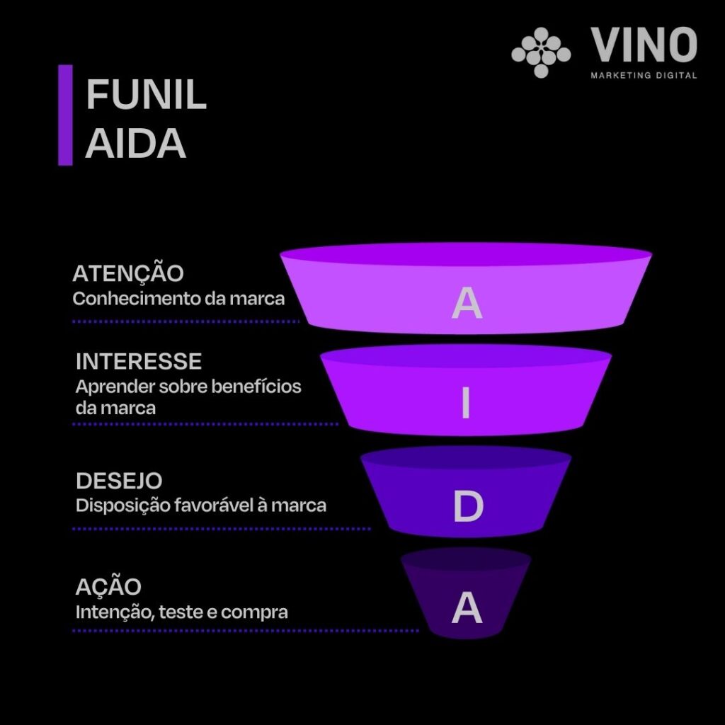 Existem quatro etapas principais para definir o nível de consciência do consumidor: Atenção, Interesse, Desejo e Ação – o modelo AIDA. Este modelo se relaciona diretamente com o Funil de Conteúdo, já que um consumidor é atraído pelo conteúdo produzido, e a partir daí começa a avançar no funil de consciência.